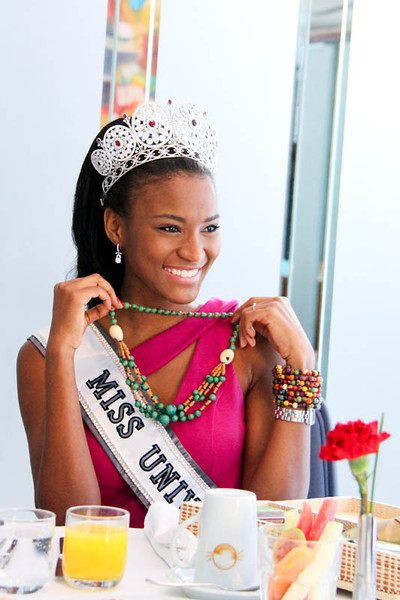 One day after his coronation, Leila Lopes - New Miss Universe had a meeting with Brazilian television. There, she interviewed about memories during construction and after the moment the crown.