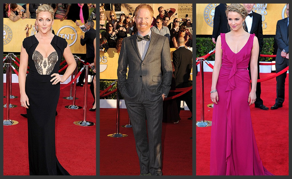 To R: Jane Krakowski, Jesse Tyler Ferguson, Diana Agron